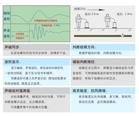 3.光標(biāo)測(cè)量聲磁延時(shí),精確判斷故障點(diǎn)的遠(yuǎn)近。